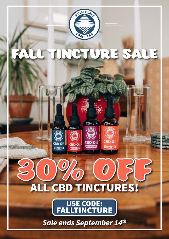 As summer starts winding down it’s a great time to hit the reset button on your self-care routine. Whether you need a little help relaxing after work, soothing sore muscles, or getting your sleep schedule back on track, our friends at Sunset Lake CBD have got you covered with their Fall Tincture Sale.