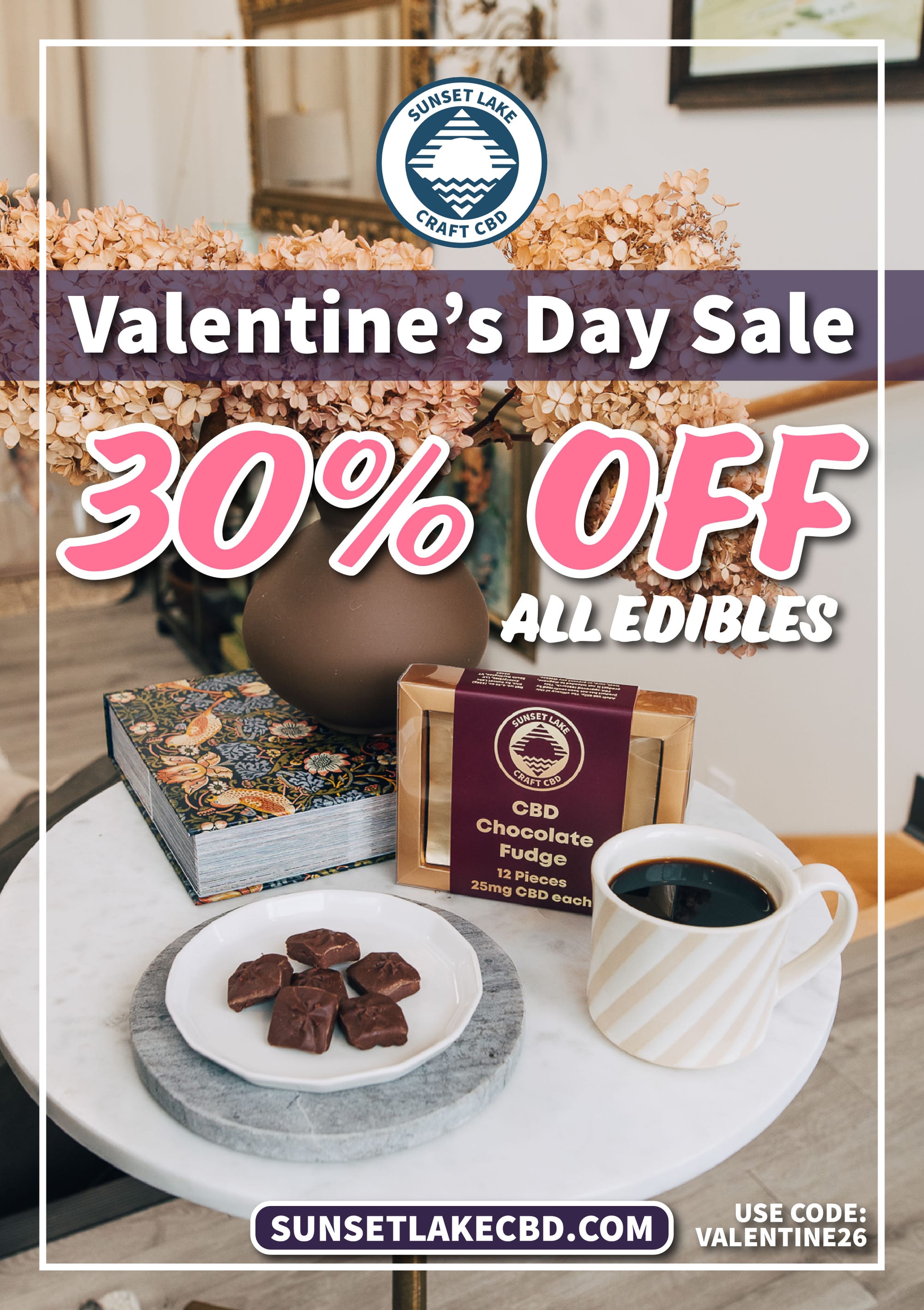Valentine’s Day is right around the corner, and Sunset Lake CBD has got you covered with a sweet deal for your sweetheart. Save 30% on all their gummies, chocolate fudge, and Farmer’s Roast coffee beans with the code VALENTINE26. And be sure to check out their new limited edition release: Citrus Vibe Gummies! One of these full-spectrum gummies can soothe those pre-date jitters and help you to just vibe.