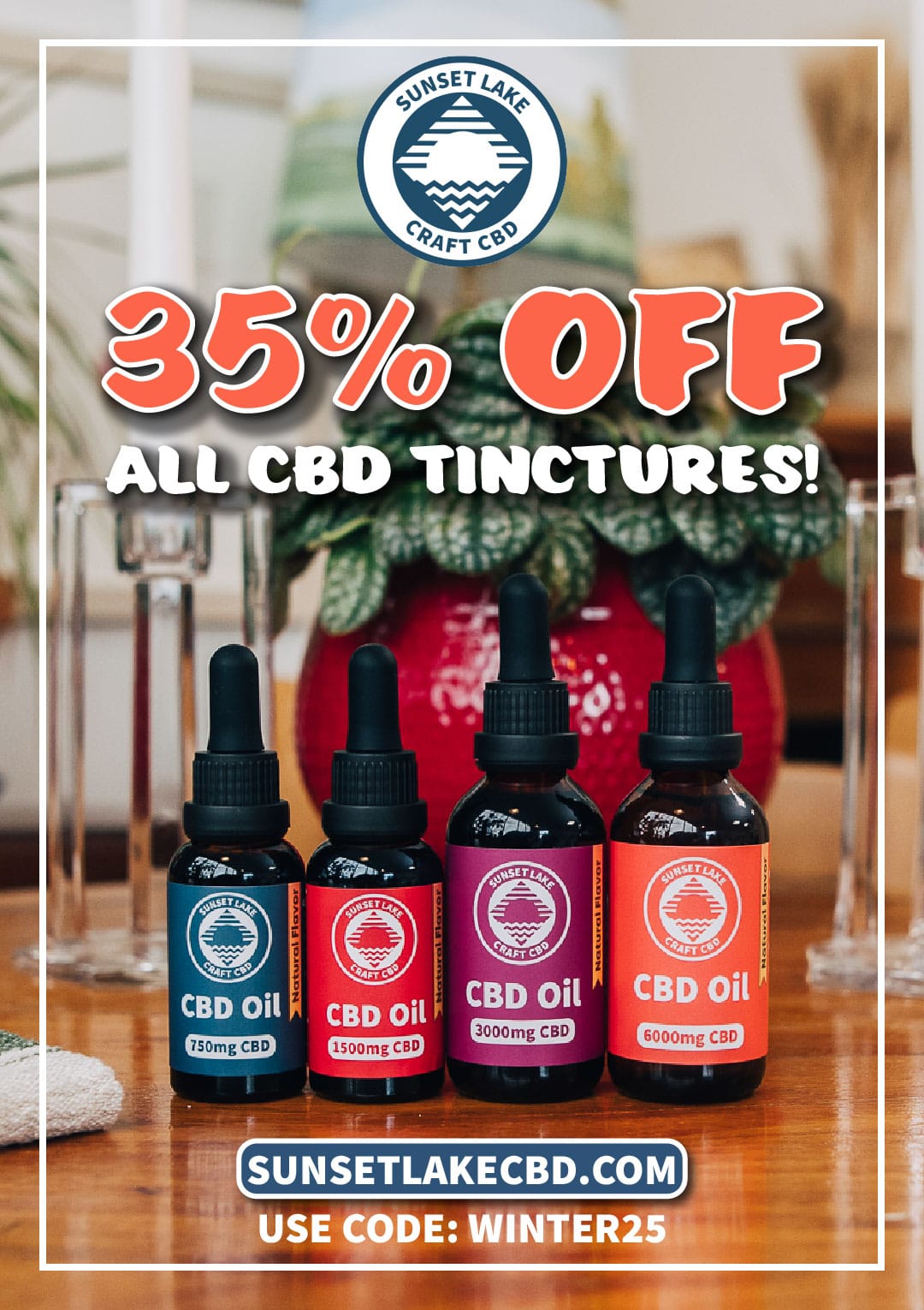 Do you still need to get some holiday gifts for friends and family? This year, skip the Amazon gift card and give the people you love the gifts of relaxation and a good night’s sleep with one of Sunset Lake CBD’s Tinctures. Tinctures make it easy to dial in your dose and get relief quickly. Whether you’re traveling across the country or spending time close to home, Sunset Lake’s tinctures can help take the edge off the holidays. Use the code Winter25 at checkout to save 35% on CBD tinctures for people & pets.