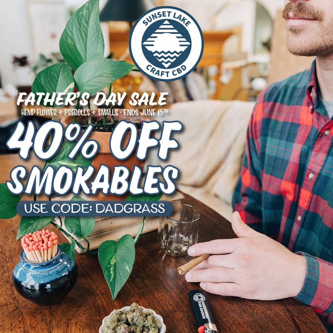 Father’s Day is a few days away! This year, skip the gift card and get your Dad some premium outdoor hemp flower from Sunset Lake CBD. This week, save 40% on all smokable hemp flower products when you shop with coupon code DadGrass.